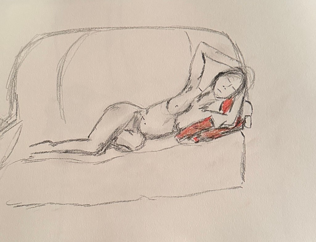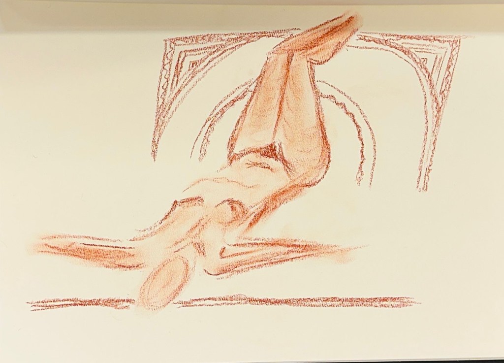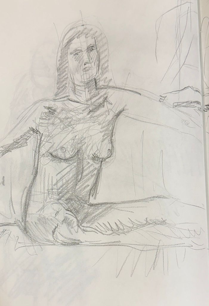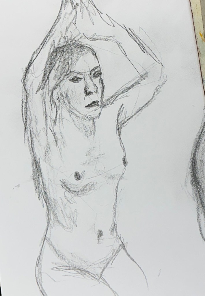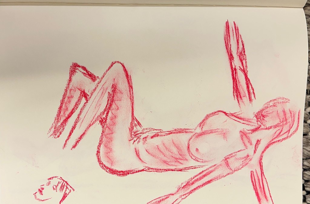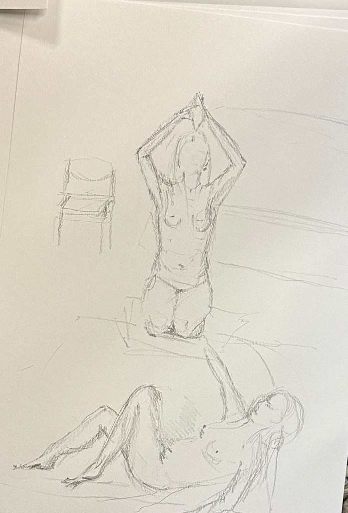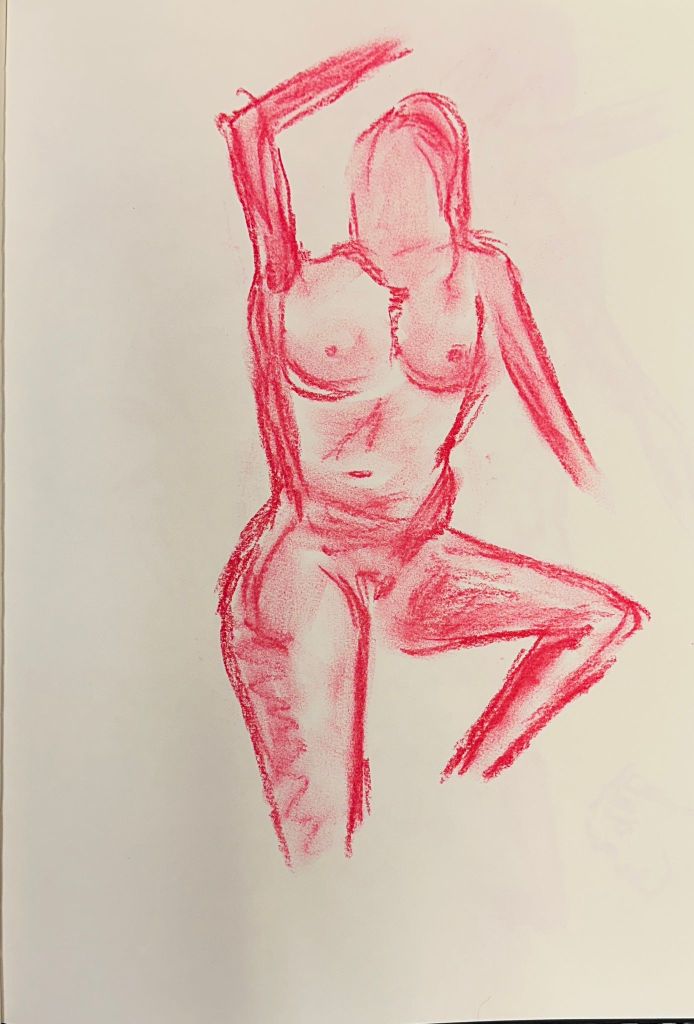 We spent a great and exciting evening life drawing with Celeste as our model. Some of the drawings are attached, more will be shown later in the gallery.